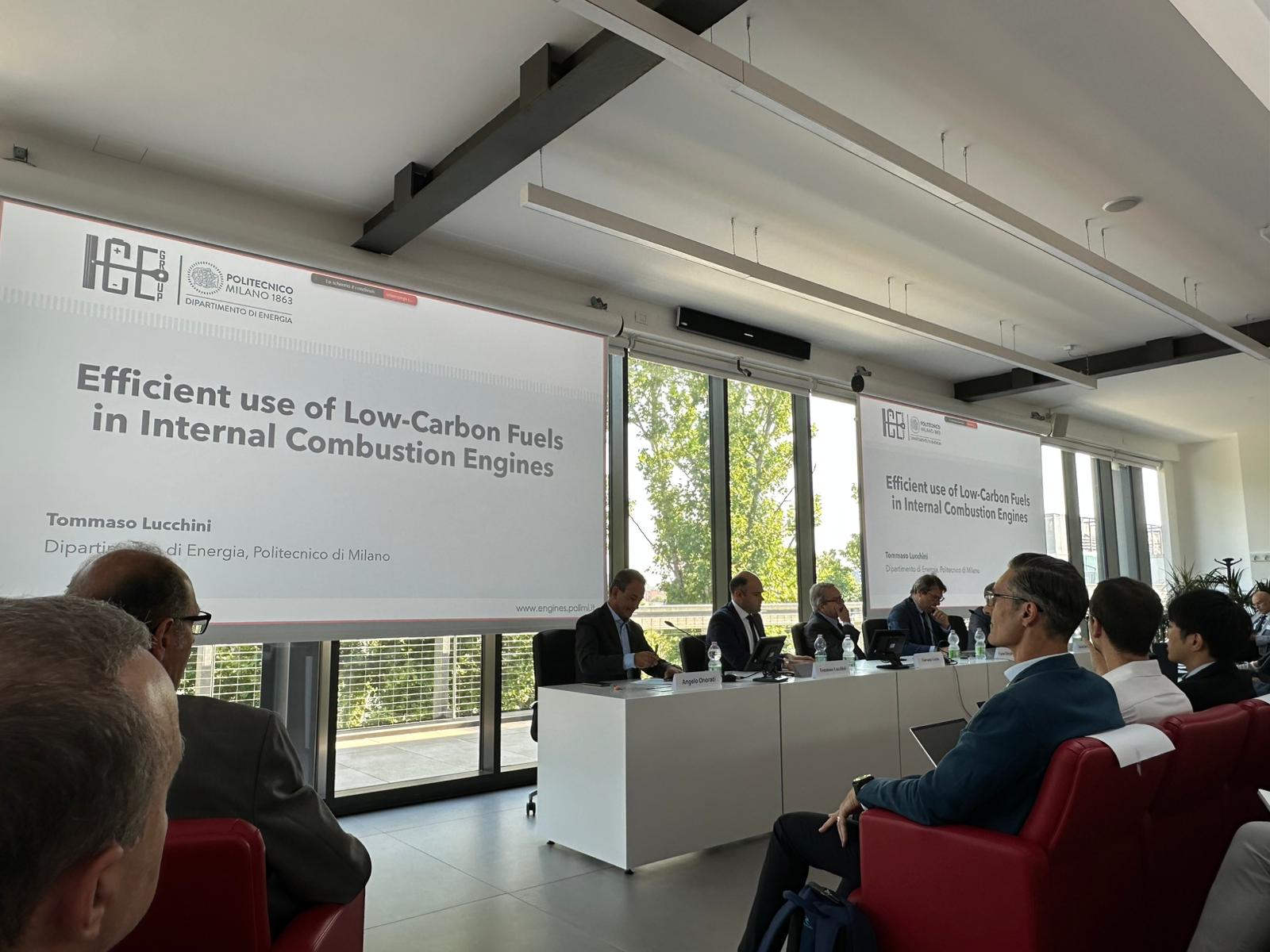 The final round table, moderated by science journalist Giovanni Caprara (Corriere della Sera), involved representatives from companies, institutions and the press, such as Ferrari, Enilive, Quattroruote, FPT Industrial, SARAS, Dumarey, Cluster Lombardo Mobilità and Fondazione Politecnico – Hydrogen-JRP, giving rise to a rich and detailed discussion on the future of internal combustion engines powered by sustainable fuels.