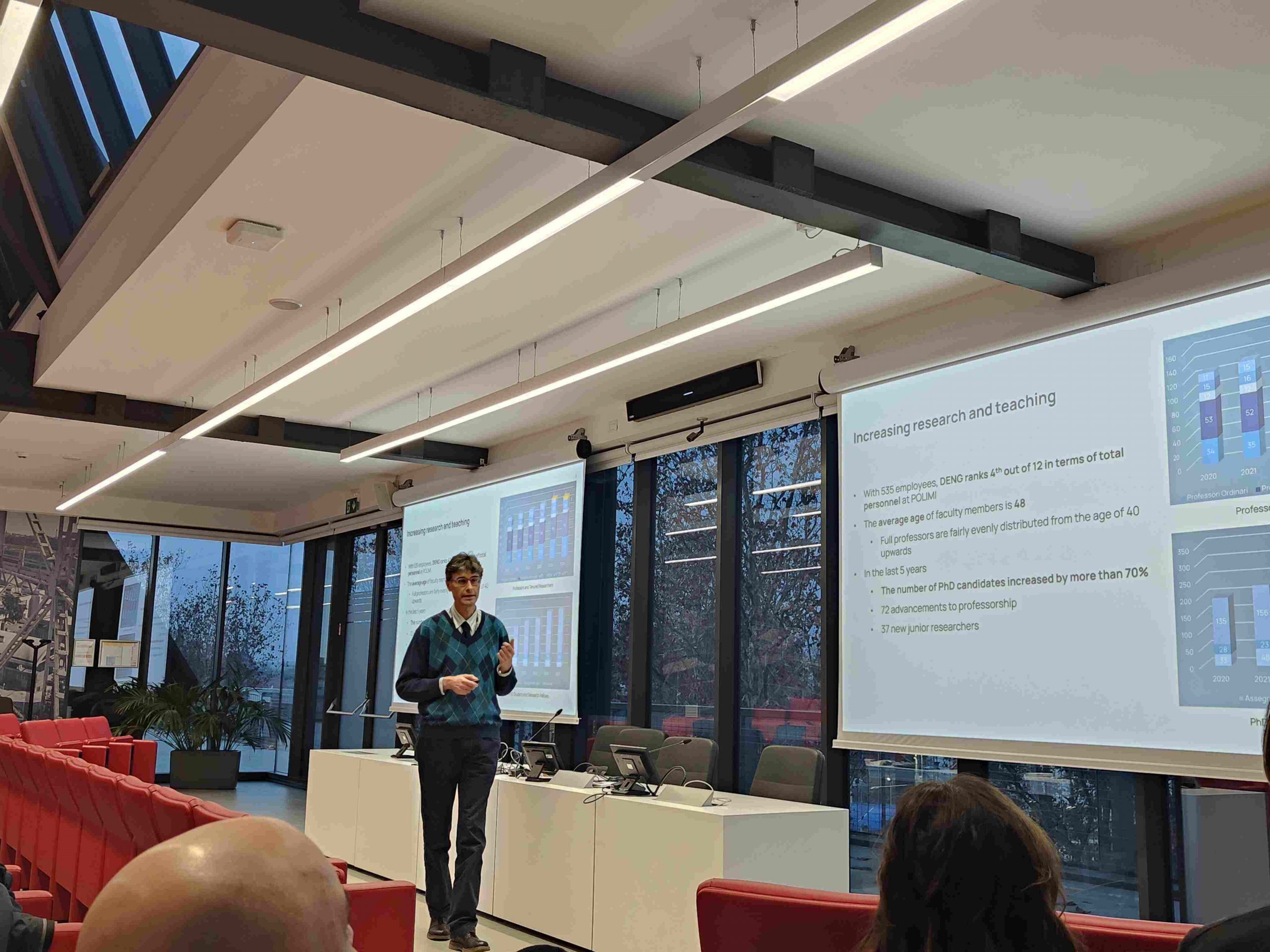 L’evento si è svolto presso la Sala Consiglio dell’edificio EN:lab con la partecipazione di più di 40 studenti e studentesse e di alcuni professori del collegio docenti STEN. Il Prof. Luigi Colombo, coordinatore di STEN, è intervenuto per raccontare il corso di dottorato e i principali contenuti, offrendo informazioni e consigli su come affrontare il percorso formativo.